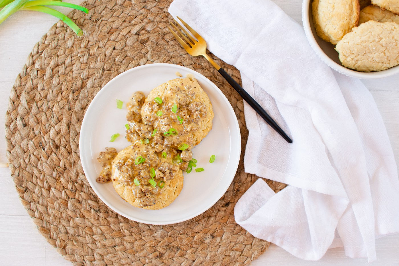 Nothing says comfort like a freshly baked biscuit loaded with savory gravy. Now you can enjoy that comfort the NuTrail way! Our keto-friendly biscuits make the perfect bed for a cheesy twist on a classic southern breakfast gravy.