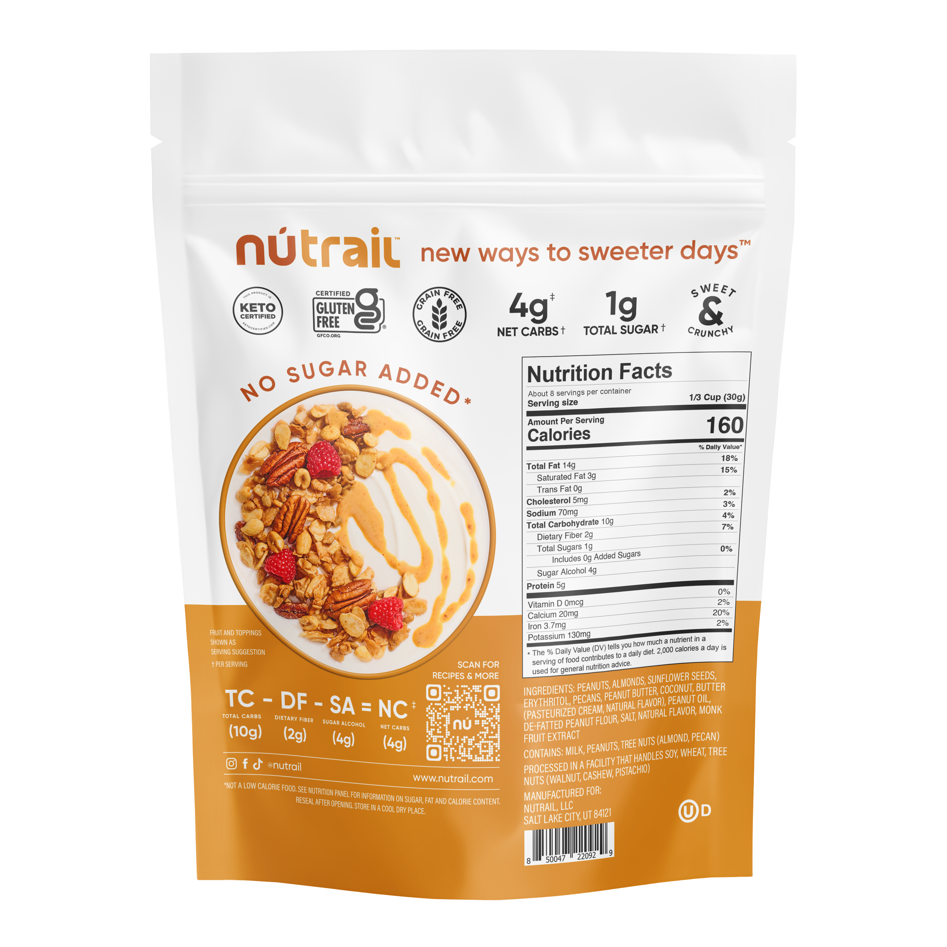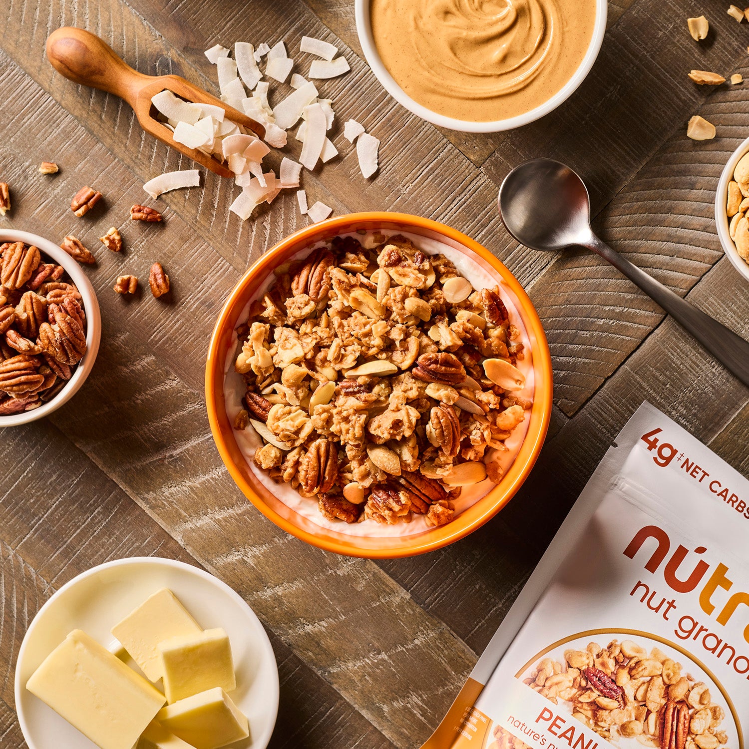 Ingredients: PEANUTS, ALMONDS, SUNFLOWER SEEDS, ERYTHRITOL, PECANS, PEANUT BUTTER, COCONUT, BUTTER, (PASTEURIZED CREAM, NATURAL FLAVOR), PEANUT OIL, DEFATTED PEANUT FLOUR, SALT< NATURAL FLAVOR, MONK FRUIT EXTRACT